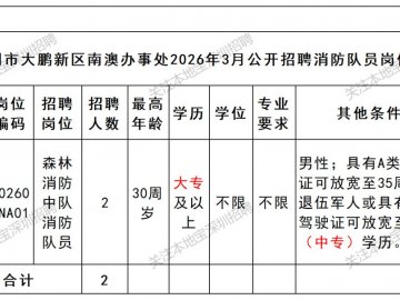 深圳市消防救援支队2026年度第一批次政府专职消防员招录公告发布,招录926名政府专职消防员,详见正文。