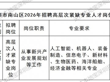2026深圳市南山区招聘高层次紧缺专业人才5人公告(3-4月)