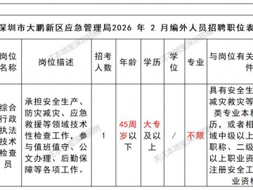 2026年1月深圳市龙岗区南湾街道办招聘公告(网格员+厨师等)