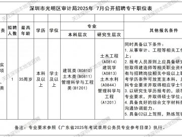 深圳市光明区工业和信息化局2025年7月公开招聘(选聘)专干公告